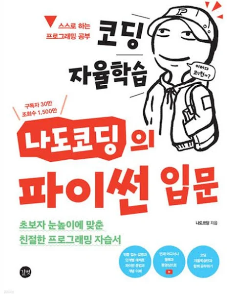 나도코딩님의 파이썬 입문 서적에서는 다양한 예제, 방법, 연습문제들이 있어서 접근하기 쉬웠고, 이론들과 같은 조금 더 디테일한 팁과 노트 들에서도 많은 호기심을 불러왔습니다. 셀프 체크 등에서도 개념을 다질 수 있었고 해설을 통해서 한 번 더 이해할 수 있었습니다.