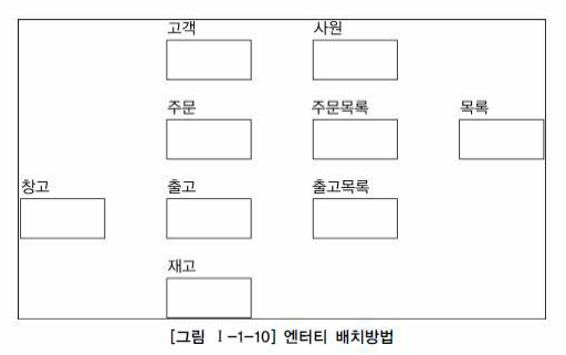 업무에서 가장 중요한 엔티티는 왼쪽 상단에서 조금 아래쪽 중앙에 배치하여 어울릴 수 있도록 한다.