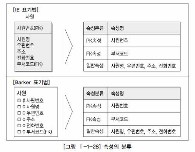 주의 : 업무로부터 분석한 속성이라도 업무상 코드로 정의한 속성이 많다는 것. 이러한 경우 속성의 값이 원래 속성을 나타내지 못하므로 기본속성이 되지 않음.
