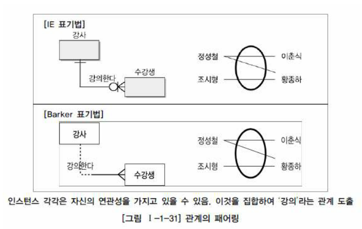 각 엔티티 인스턴스들은 관련된 인스턴스들과 관계의 어커런스로 참여하는 형태를 관계 페어링(Relationship Paring)이라고 함.