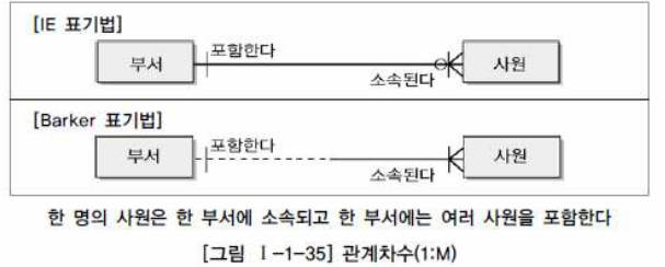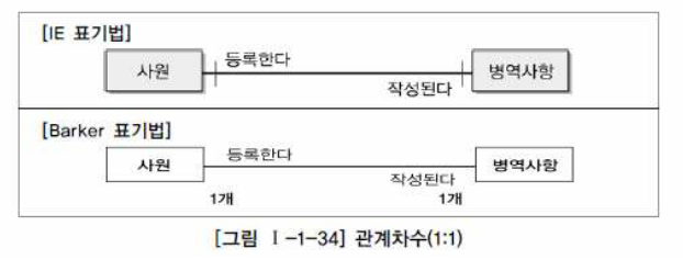 두 엔티티간 관계에서 참여자의 수를 관계차수(Cardinality)라고 함.